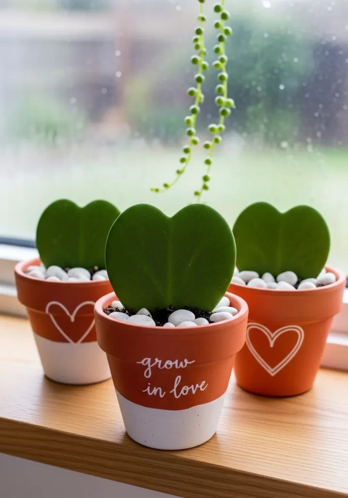 - Plant your largest succulents in the center so they peek out through the heart opening.