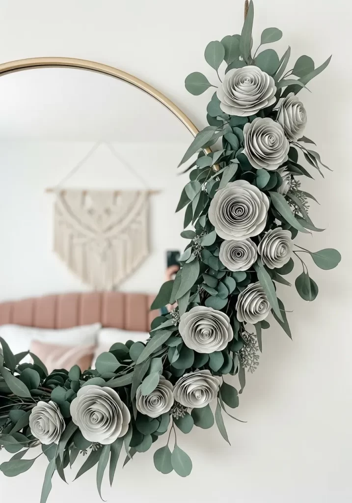 Greenery drapes naturally from the top to the bottom to give the piece a finished look. You can use faux flowers to keep this display looking fresh throughout the entire season. It is a simple way to bring high end style into your home with a personal touch.
