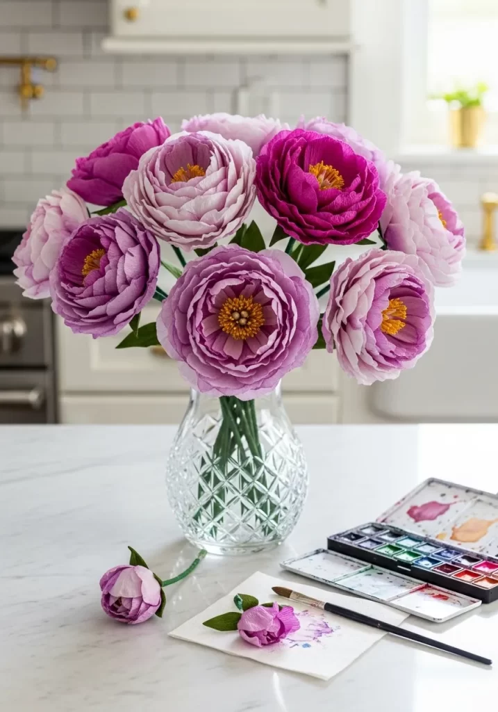 - Group three to five flowers in each vase to create a dense, rounded “pom pom” look.