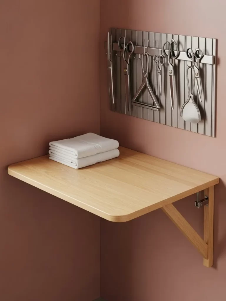 Material Required List Slim folding step stool Custom vertical wall bracket or heavy duty J hooks Wall anchors for drywall or masonry Decorative trim (optional)