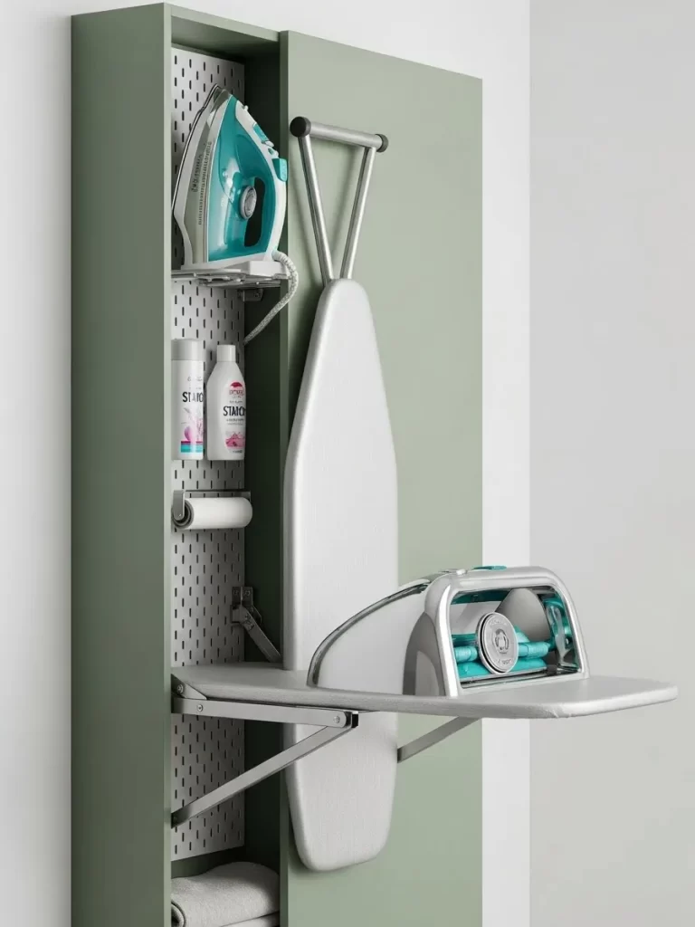 - Add Finishing Touches: Ensure the cabinet door opens and closes smoothly. You now have a professional grade pressing station that disappears when the task is done.